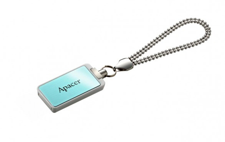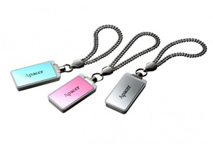 Apacer Handy Steno AH129 per donne: design lucido e tre diverse versioni nei colori pastello ovvero Azzurro Tiffany, Rosa brillante e Argento. Il ciondolo argentato è inoltre provvisto di fibbia in lega di zinco.